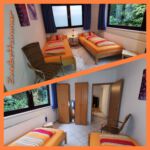 Die Wohnung verfügt über 1 Doppelzimmer (Zugang vom WZ + Bad), 1 Kinderzimmer mit einem Einzelbett und 1 Kinderbett (Zugang vom Bad), 1 Zweibettzimmer (Zugang vom Esszimmer) und eine Schlafcouch im Esszimmer. Die Wohnung bietet somit Platz für max. 6 Personen und 1 Kleinkind.